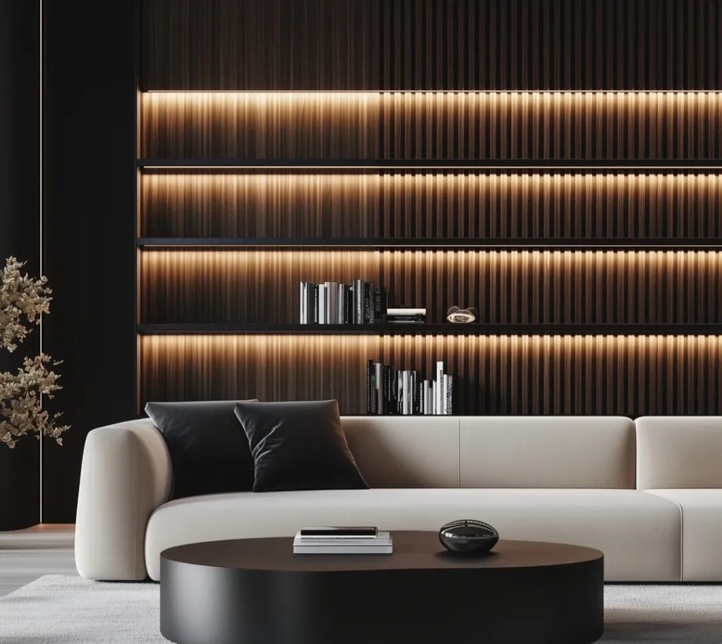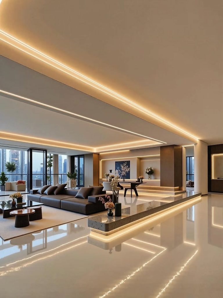 ۶. ترندهای طراحی داخلی ۲۰۲۵ ، مبلمان ارگانیک استفاده از متریالهای بازیافتی خانههای هوشمند آشپزخانههای اپن بدون کابینتهای بالایی نورپردازی خطی مدرن.