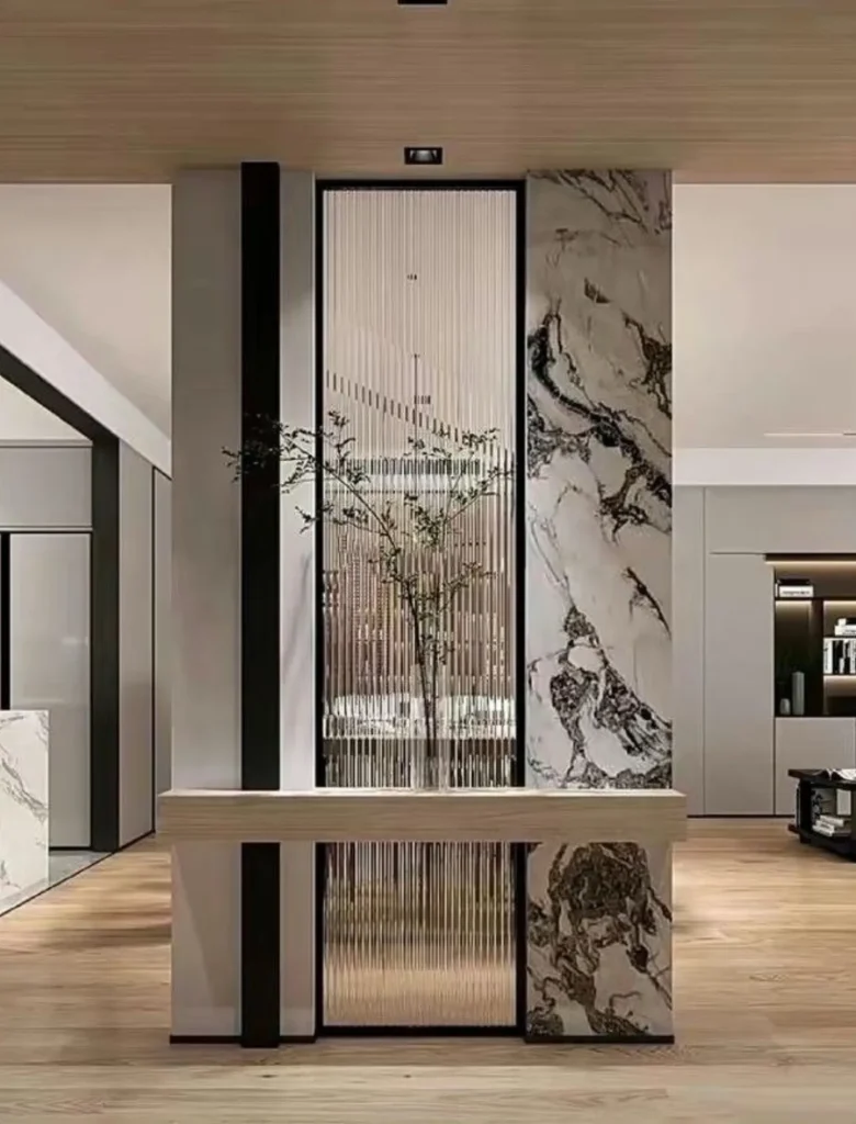 🔹️۳. متریال : چوب، بتن اکسپوز، سنگ مرمر و فلزات مات.